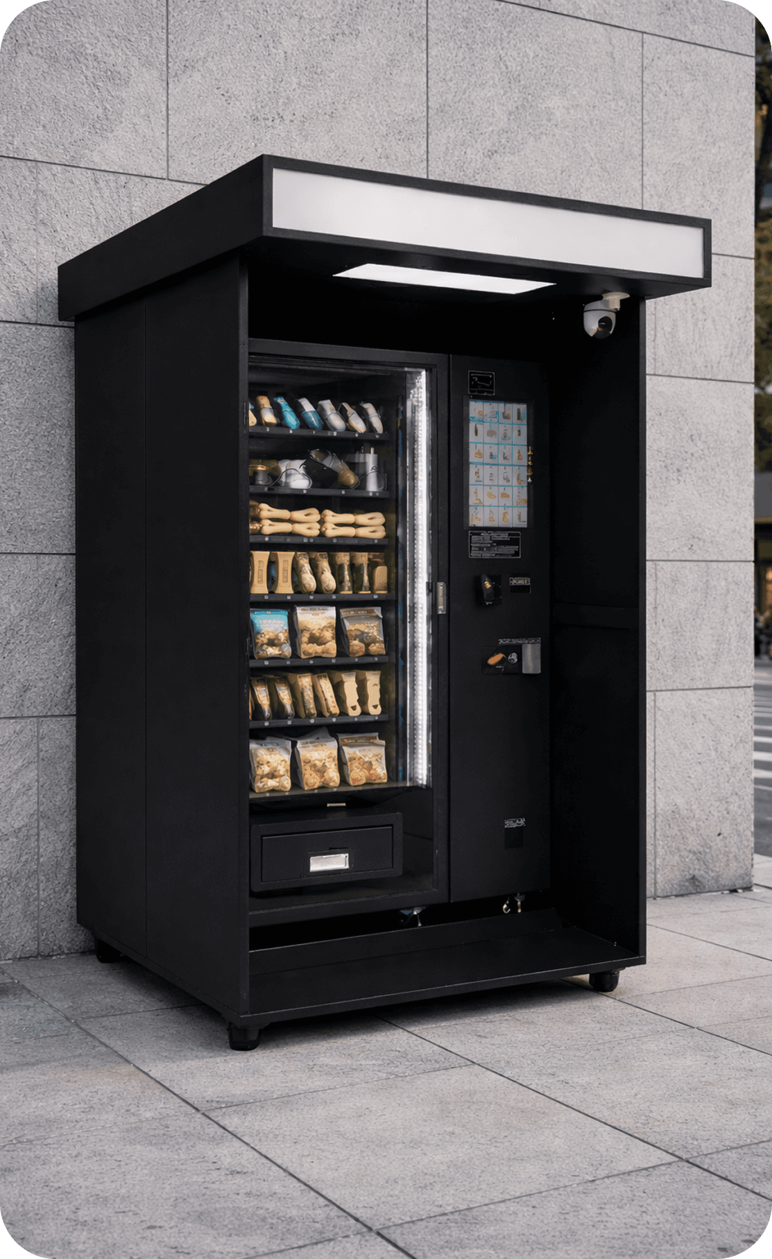 Automat lze jednorázově koupit a provozovat samostatně. Ať už s naším sortimentem nebo vlastním. Cena od 190 000 Kč.